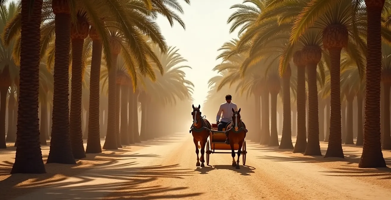 L’image est presque une carte postale : une calèche colorée, tirée par un cheval paisible, serpentant à travers les allées ombragées de la palmeraie de Tozeur. Pour beaucoup, c’est l’expérience ultime, un moment hors du temps. D’autres, plus sportifs, ne jurent que par le vélo pour explorer ce labyrinthe de verdure à leur propre rythme. La question de savoir quel est le meilleur moyen de transport semble alors centrale. C’est le dilemme classique du visiteur, tiraillé entre l’authenticité supposée de l’attelage et la liberté de la bicyclette.
