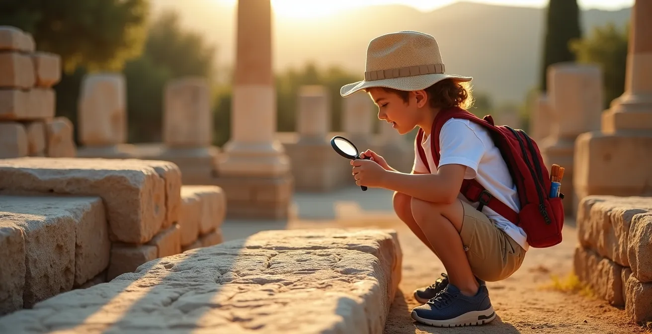 Et si la solution n’était pas de simplifier l’histoire, mais de donner aux enfants les outils pour la déchiffrer eux-mêmes ? Cet article propose une approche radicalement différente : transformer votre enfant en Archéologue-Détective. L’idée n’est plus de « visiter » un site, mais de le considérer comme une scène de crime historique à résoudre. Chaque pierre, chaque colonne, chaque fragment de mosaïque devient un indice. Votre rôle n’est plus celui d’un professeur, mais celui du chef de mission qui fournit les outils et les énigmes.