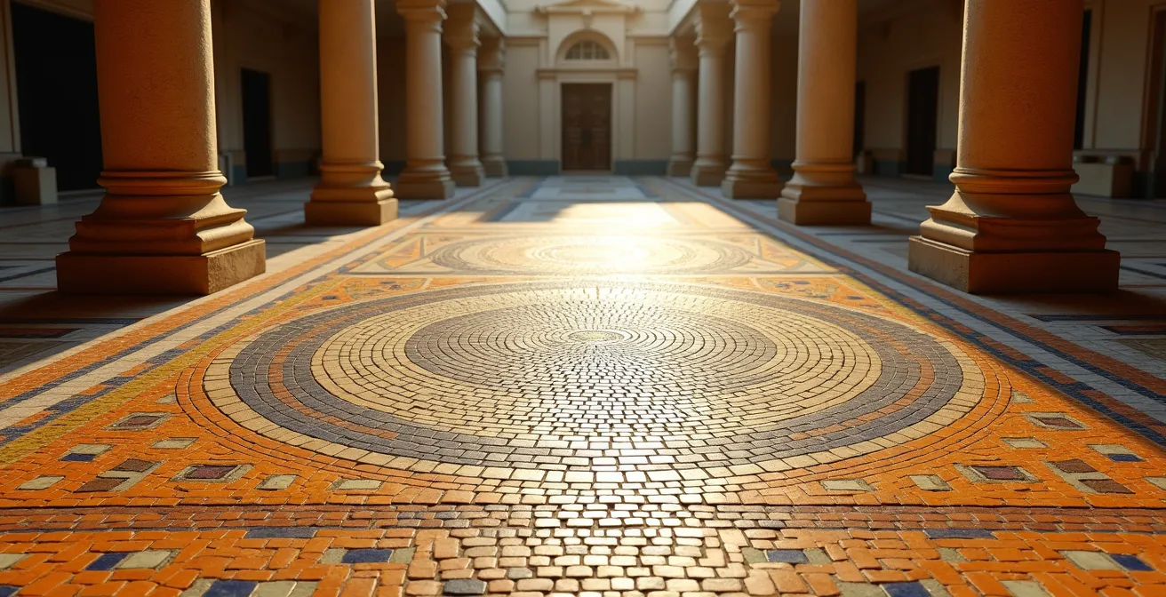 Une mosaïque complexe au sol est souvent le premier indice qui nous frappe dans une villa romaine. Ses couleurs, la finesse de ses tesselles, la complexité de sa scène mythologique… tout crie la richesse et le statut du propriétaire. C’est un signe évident, presque un raccourci, pour évaluer l’opulence d’une demeure antique. Mais se contenter de cette observation, c’est comme lire uniquement le titre d’un livre fascinant. Car cette mosaïque n’est que la partie la plus décorative d’un système bien plus profond, un véritable chef-d’œuvre d’ingénierie.